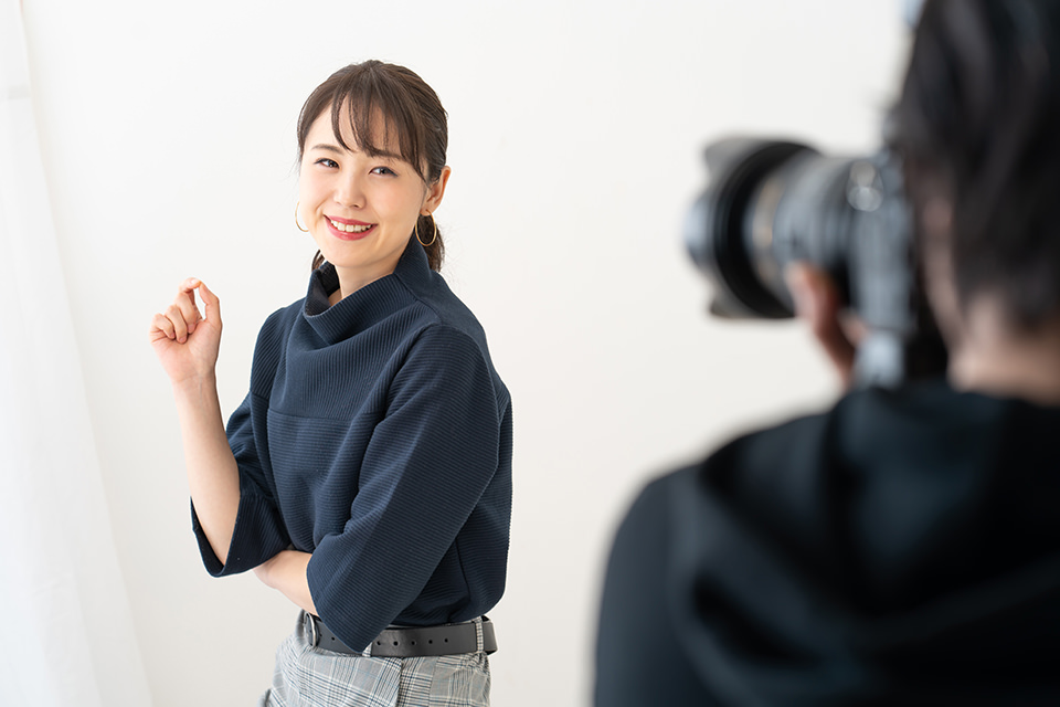 ②の初期研修を受講いただいたあとは、広告の世界で最も大切なプロフィール(宣材)写真を撮影します。写真はご自身を売り込むための最も重要なツールです。撮影会ではメイク・ヘアメイクを行い、様々なポージングでバッチリ決めていただきます!
